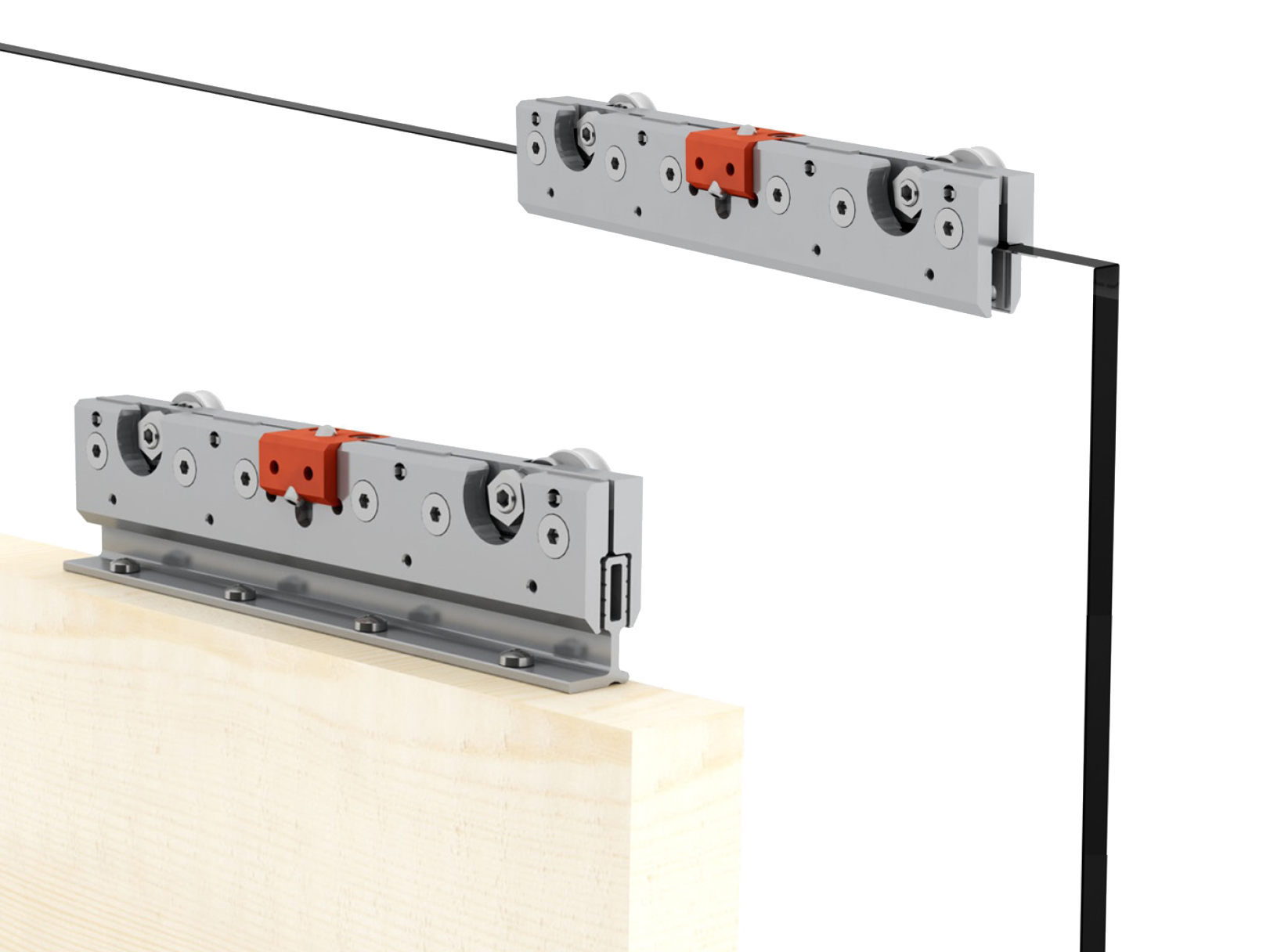 Smooth and quiet ball-bearing wheels with universal threads for different Falkenstein door mounts. Tested for 100,000+ cycles at full weight capacity.